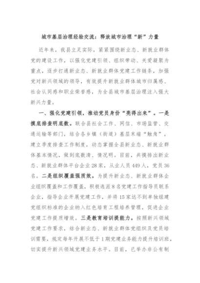 / 【七哥公文】2024年:城市基层治理经验交流:释放城市治理“新”力量+更多免费公文+VX:QiGeGongWen2024