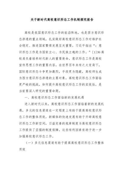 【七哥公文】2024年:关于新时代高校意识形态工作机制探究报告+更多免费公文+VX:QiGeGongWen2024