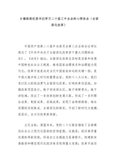 【七哥公文】2024年:乡镇街道纪委书记学习二十届三中全会的心得体会(全面深化改革)+更多免费公文+VX:QiGeGongWen2024