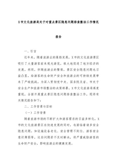 【七哥公文】2024年:X市文化旅游局关于对重点景区隐患问题排查整治工作情况报告+更多免费公文+VX:QiGeGongWen2024