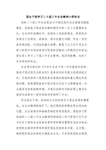 / 【七哥公文】2024年:国企干部学习二十届三中全会精神心得体会+更多免费公文+VX:QiGeGongWen2024