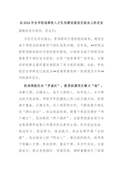 【七哥公文】2024年:在2024年全市驻地高校人才队伍建设座谈交流会上的发言+更多免费公文+VX:QiGeGongWen2024