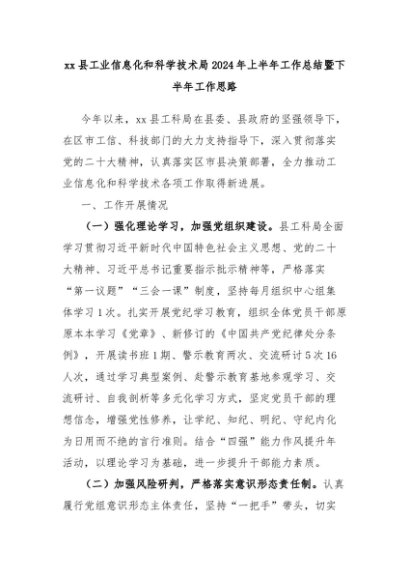 【七哥公文】2024年:xx县工业信息化和科学技术局2024年上半年工作总结暨下半年工作思路+更多免费公文+VX:QiGeGongWen2024