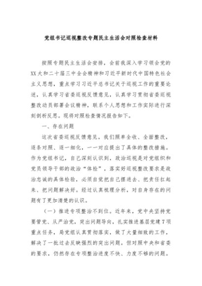 / 【七哥公文】2024年:党组书记巡视整改专题民主生活会对照检查材料+更多免费公文+VX:QiGeGongWen2024
