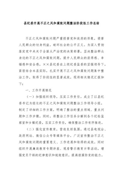 / 【七哥公文】2024年:县纪委开展不正之风和腐败问题整治阶段性工作总结+更多免费公文+VX:QiGeGongWen2024