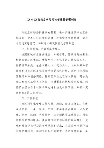 / 【七哥公文】2024年:XX市XX街道办事处网格管理员管理制度+更多免费公文+VX:QiGeGongWen2024
