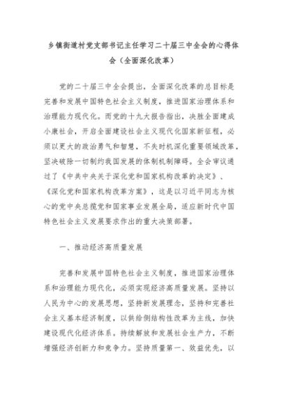 【七哥公文】2024年:乡镇街道村党支部书记主任学习二十届三中全会的心得体会(全面深化改革)+更多免费公文+VX:QiGeGongWen2024