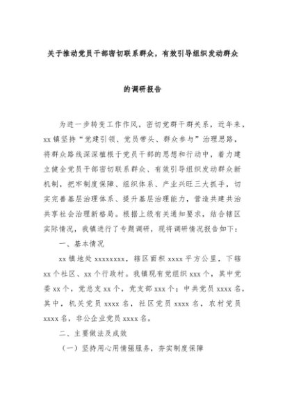 【七哥公文】2024年:关于推动党员干部密切联系群众,有效引导组织发动群众的调研报告+更多免费公文+VX:QiGeGongWen2024