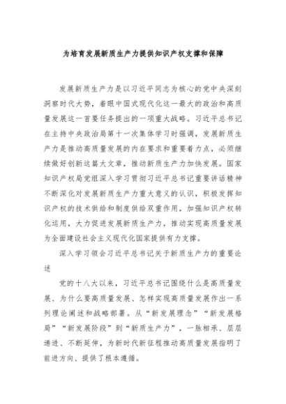 / 【七哥公文】2024年:为培育发展新质生产力提供知识产权支撑和保障+更多免费公文+VX:QiGeGongWen2024