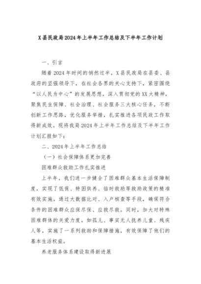 【七哥公文】2024年:X县民政局2024年上半年工作总结及下半年工作计划+更多免费公文+VX:QiGeGongWen2024