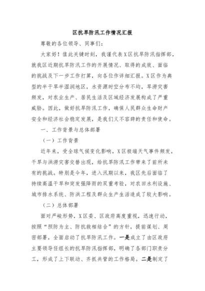 / 【七哥公文】2024年:区抗旱防汛工作情况汇报+更多免费公文+VX:QiGeGongWen2024