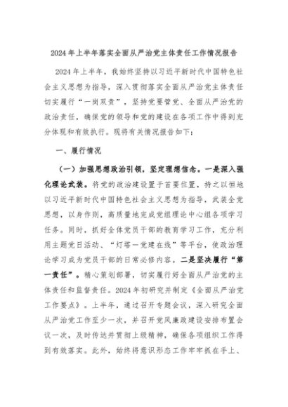 【七哥公文】2024年:2024年上半年落实全面从严治党主体责任工作情况报告+更多免费公文+VX:QiGeGongWen2024