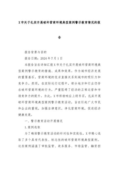 【七哥公文】2024年:X市关于扎实开展破坏营商环境典型案例警示教育情况的报告+更多免费公文+VX:QiGeGongWen2024