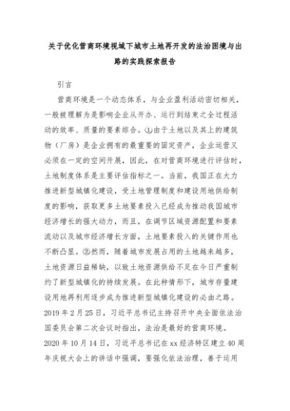 【七哥公文】2024年:关于优化营商环境视域下城市土地再开发的法治困境与出路的实践探索报告+更多免费公文+VX:QiGeGongWen2024