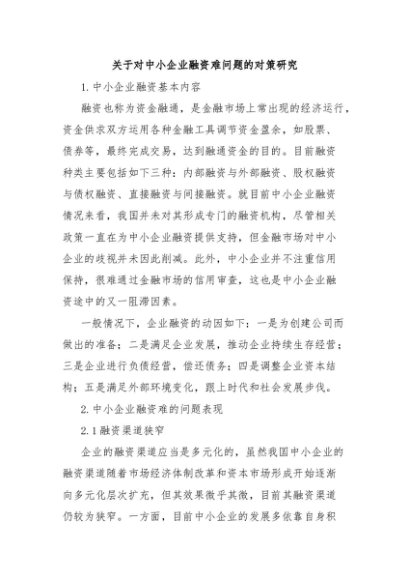 / 【七哥公文】2024年:关于对中小企业融资难问题的对策研究+更多免费公文+VX:QiGeGongWen2024