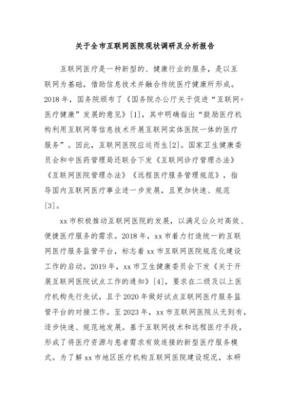 / 【七哥公文】2024年:关于全市互联网医院现状调研及分析报告+更多免费公文+VX:QiGeGongWen2024