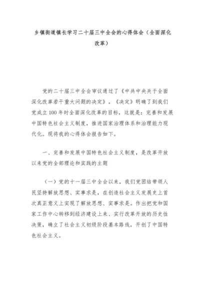 【七哥公文】2024年:乡镇街道镇长学习二十届三中全会的心得体会(全面深化改革)+更多免费公文+VX:QiGeGongWen2024