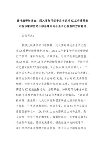 【七哥公文】2024年:读书班研讨发言:深入贯彻习近平总书记对XX工作重要批示指示精神坚定不移沿着习近平总书记指引的方向前进+更多免费公文+VX:QiGeGongWen2024