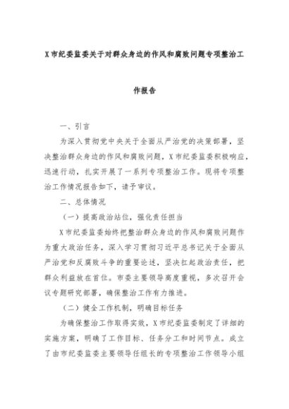 【七哥公文】2024年:X市纪委监委关于对群众身边的作风和腐败问题专项整治工作报告+更多免费公文+VX:QiGeGongWen2024