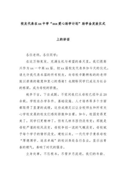 【七哥公文】2024年:校友代表在xx中学“xxx爱心助学计划”助学金发放仪式上的讲话+更多免费公文+VX:QiGeGongWen2024