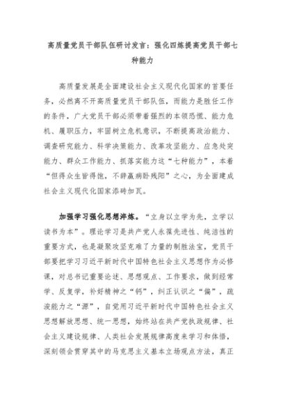 【七哥公文】2024年:高质量党员干部队伍研讨发言:强化四炼提高党员干部七种能力+更多免费公文+VX:QiGeGongWen2024