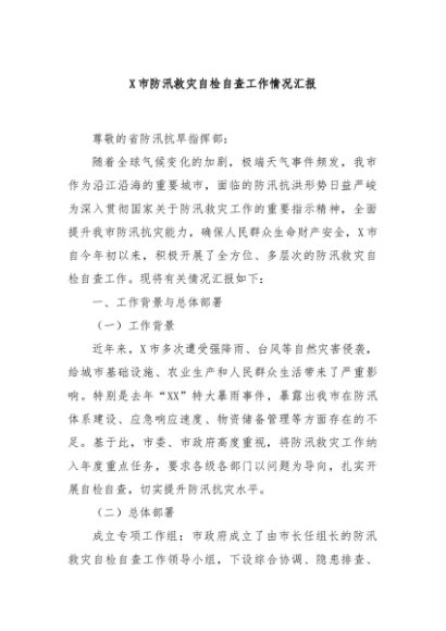 / 【七哥公文】2024年:X市防汛救灾自检自查工作情况汇报+更多免费公文+VX:QiGeGongWen2024