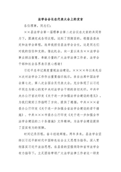 【七哥公文】2024年:法学会会长在代表大会上的发言+更多免费公文+VX:QiGeGongWen2024