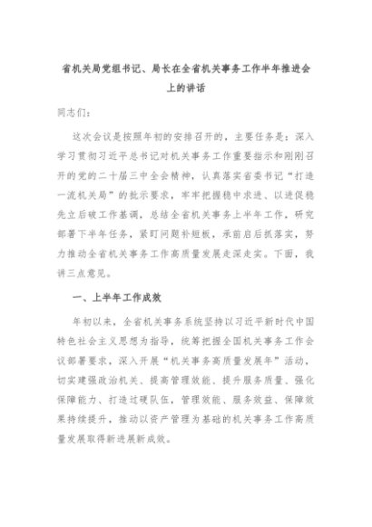 【七哥公文】2024年:省机关局党组书记、局长在全省机关事务工作半年推进会上的讲话+更多免费公文+VX:QiGeGongWen2024