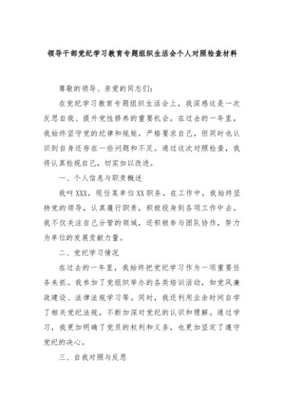 【七哥公文】2024年:领导干部党纪学习教育专题组织生活会个人对照检查材料+更多免费公文+VX:QiGeGongWen2024