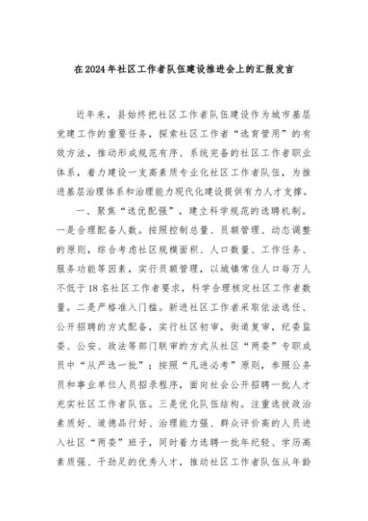 / 【七哥公文】2024年:在2024年社区工作者队伍建设推进会上的汇报发言+更多免费公文+VX:QiGeGongWen2024