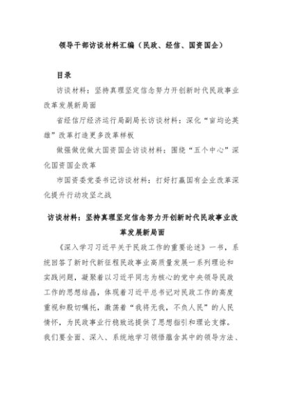 【七哥公文】2024年:领导干部访谈材料汇编(民政、经信、国资国企)+更多免费公文+VX:QiGeGongWen2024
