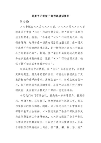 / 【七哥公文】2024年:县委书记提振干部作风讲话提纲+更多免费公文+VX:QiGeGongWen2024