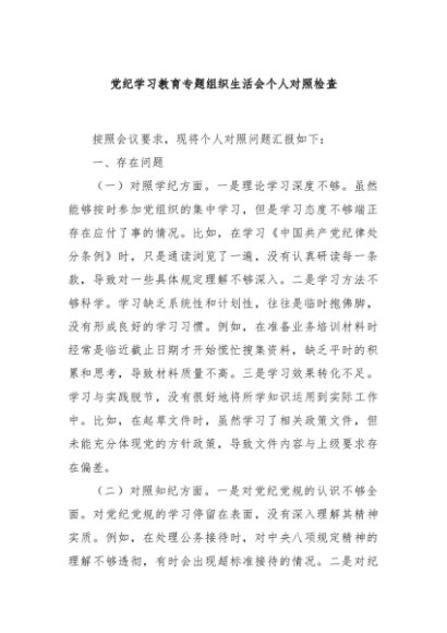 / 【七哥公文】2024年:党纪学习教育专题组织生活会个人对照检查+更多免费公文+VX:QiGeGongWen2024
