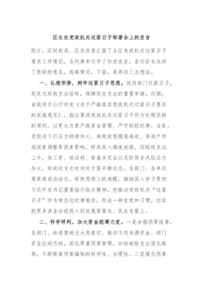 / 【七哥公文】2024年:区长在党政机关过紧日子部署会上的发言+更多免费公文+VX:QiGeGongWen2024