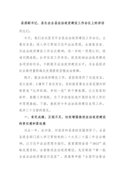【七哥公文】2024年:县委副书记、县长在全县法治政府建设工作会议上的讲话+更多免费公文+VX:QiGeGongWen2024