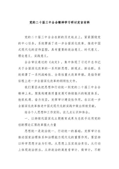 / 【七哥公文】2024年:党的二十届三中全会精神学习研讨发言材料+更多免费公文+VX:QiGeGongWen2024