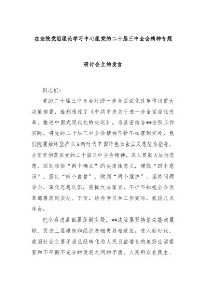 【七哥公文】2024年:在法院党组理论学习中心组党的二十届三中全会精神专题研讨会上的发言+更多免费公文+VX:QiGeGongWen2024