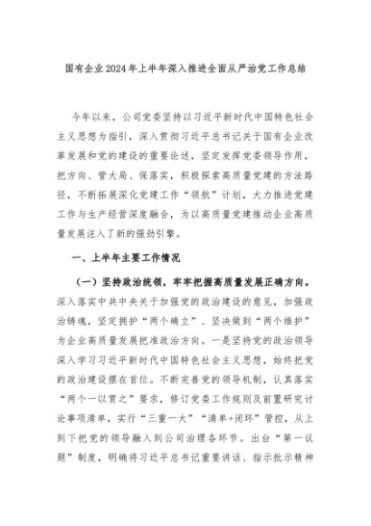 【七哥公文】2024年:国有企业2024年上半年深入推进全面从严治党工作总结+更多免费公文+VX:QiGeGongWen2024