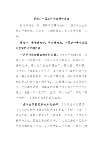 【七哥公文】2024年:党的二十届三中全会研讨发言+更多免费公文+VX:QiGeGongWen2024