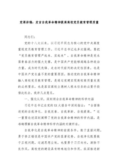 【七哥公文】2024年:党课讲稿:发言自我革命精神提高高校党员教育管理质量+更多免费公文+VX:QiGeGongWen2024