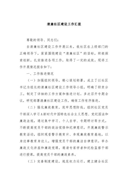/ 【七哥公文】2024年:清廉社区建设工作汇报+更多免费公文+VX:QiGeGongWen2024