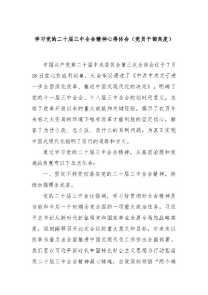【七哥公文】2024年:学习党的二十届三中全会精神心得体会(党员干部角度)+更多免费公文+VX:QiGeGongWen2024