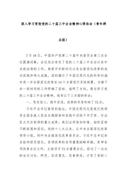 【七哥公文】2024年:深入学习贯彻党的二十届三中全会精神心得体会(青年群众版)+更多免费公文+VX:QiGeGongWen2024