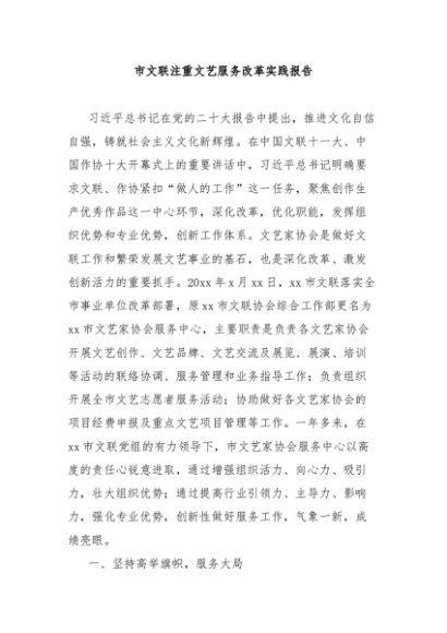/ 【七哥公文】2024年:市文联注重文艺服务改革实践报告+更多免费公文+VX:QiGeGongWen2024