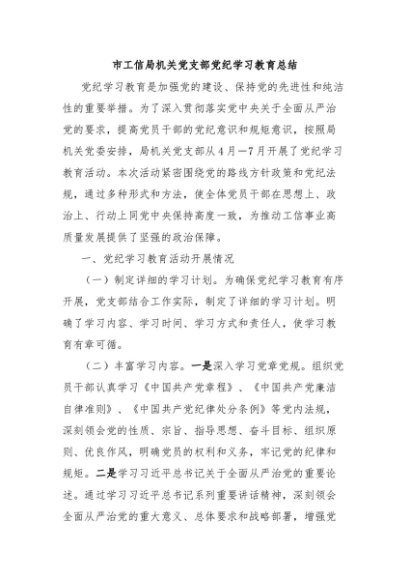 / 【七哥公文】2024年:市工信局机关党支部党纪学习教育总结+更多免费公文+VX:QiGeGongWen2024