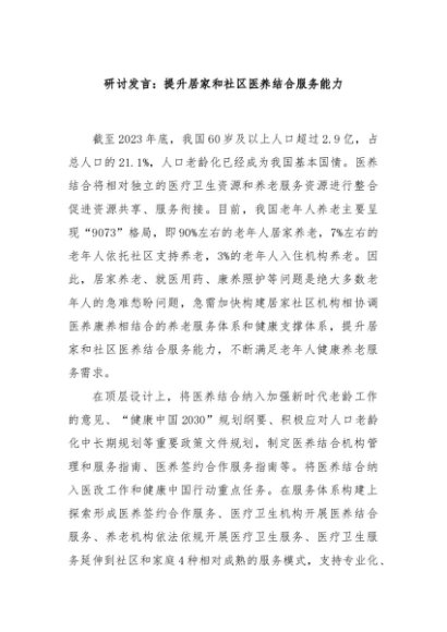 / 【七哥公文】2024年:研讨发言:提升居家和社区医养结合服务能力+更多免费公文+VX:QiGeGongWen2024