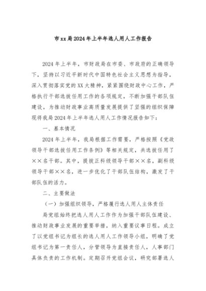 / 【七哥公文】2024年:市XX局2024年上半年选人用人工作报告+更多免费公文+VX:QiGeGongWen2024