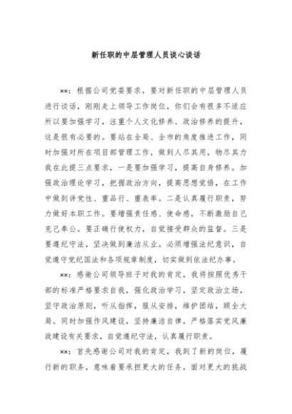 【七哥公文】2024年:新任职的中层管理人员谈心谈话+更多免费公文+VX:QiGeGongWen2024