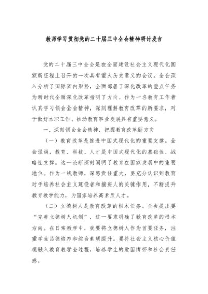 / 【七哥公文】2024年:教师学习贯彻党的二十届三中全会精神研讨发言+更多免费公文+VX:QiGeGongWen2024