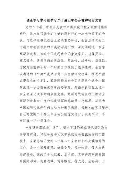 / 【七哥公文】2024年:理论学习中心组学习二十届三中全会精神研讨发言+更多免费公文+VX:QiGeGongWen2024